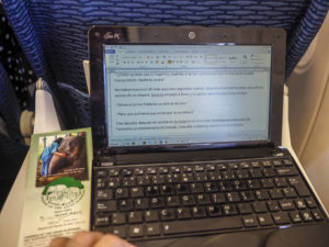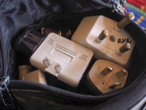 La maleta de viaje pesaba poco. Aparte de transportar tres grandes libros[1], me llevé dos pantalones y media docena de camisetas y algo de ropa interior que lavaba casi siempre a media noche tras finalizar las tareas “urgentes”, un jersey ligero, un anorak plegable y un canguro. Complementando la ropa un neceser, un botiquín y enchufes de todo tipo que ocupaban la mitad el espacio.